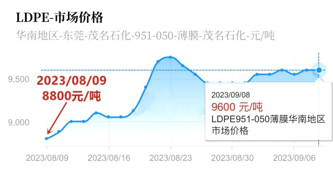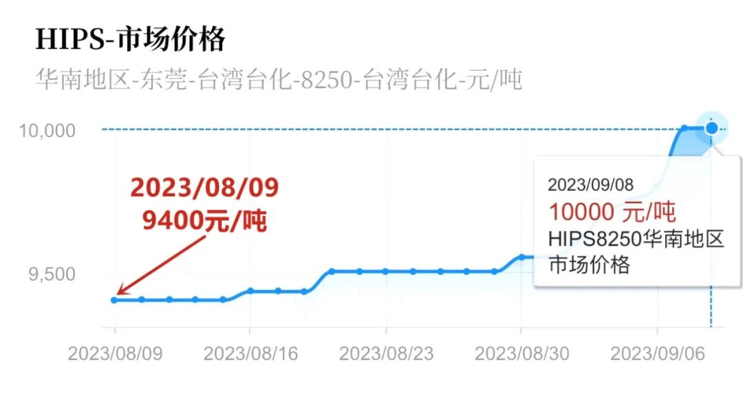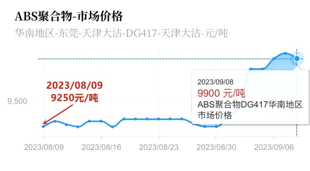 ABS日前报价10650元/吨,9月以来价格上涨550元/吨,涨幅5.45%;