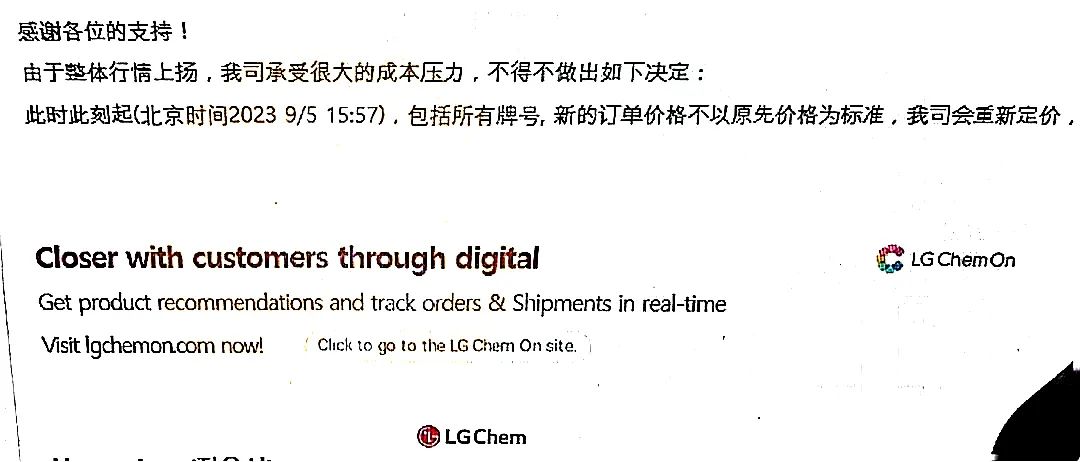 LG化学宣布,由于整体行情上扬,公司面临了很大的成本压力,决定对公司所有牌号重新定价。已有经销商表示,LG全系列已经封盘,涉及PP、PC、ABS等。