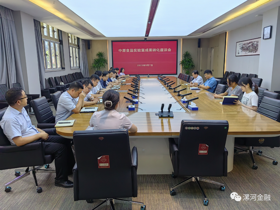 为深入贯彻落实楼阳生书记在国家知识产权局、河南省人民政府共建高质量现代化知识产权强省推进大会上的讲话精神,9月7日下午,市金融工作局组织召开市知识产权质押助力中原食品实验室成果转化座谈会。市市场监督管理局、中原食品实验室服务中心和四家银行业金融机构分管负责人参加会议。