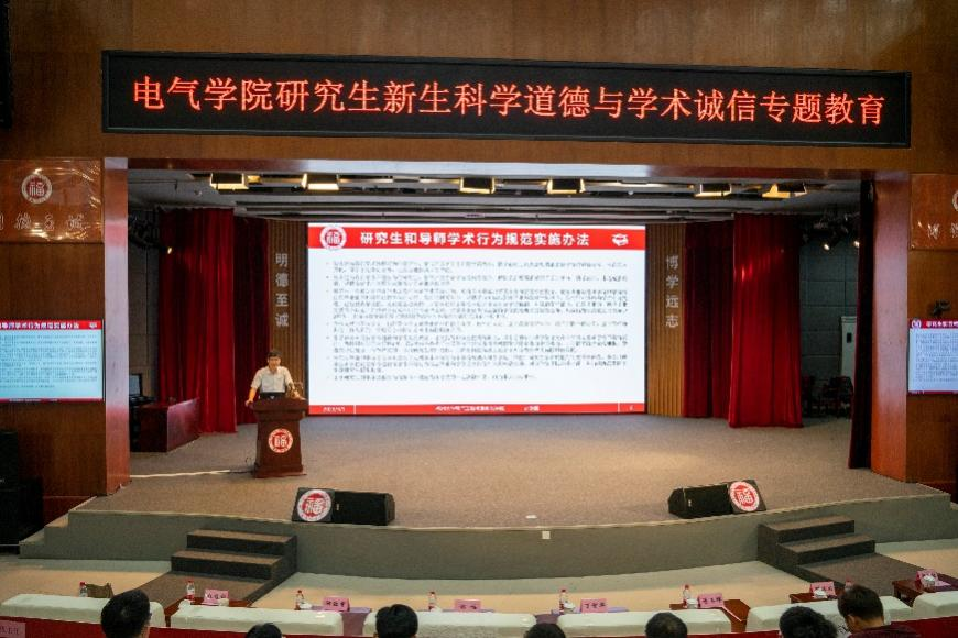 2023年9月1日下午16:00,电气工程与自动化学院于图书馆博学厅举办了2023级研究生新生入学教育,旨在指导和帮助研究生新生尽快了解和适应新环境、明确学习目的、端正学习态度、树立学术诚信意识、遵守科学道德、科学规划学习生活,顺利完成角色转变,扣好研究生生涯第一粒扣子。出席本次活动的老师有电气学院副院长邵振国教授、院长助理郑跃胜教授、团委书记李金土老师、电气学院辅导员许海燕老师,全体2023级研究生新生参会。本次新生入学教育的主讲人为邵振国教授。