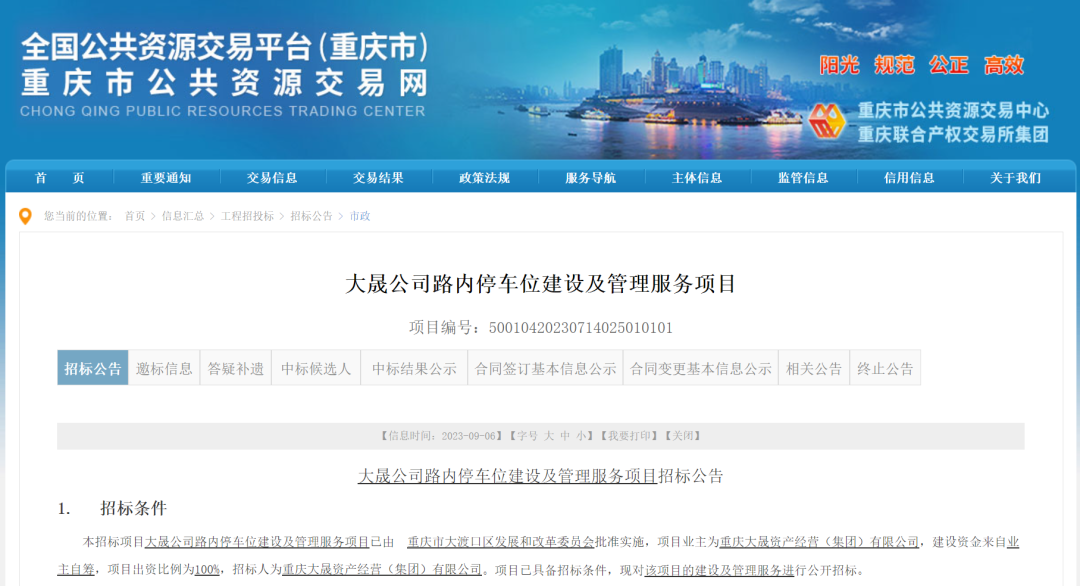 大晟公司路内停车位建设及管理服务项目招标公告