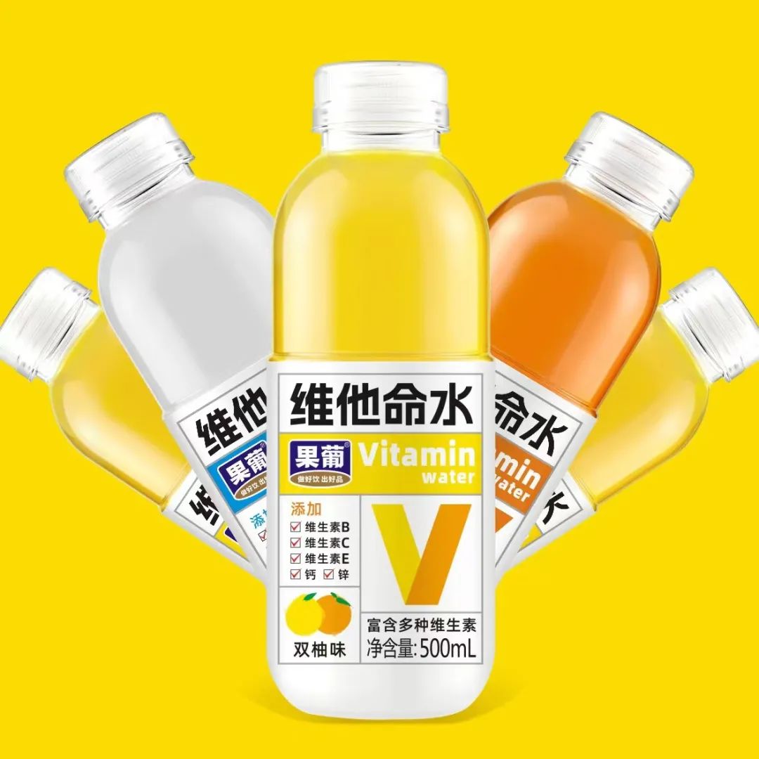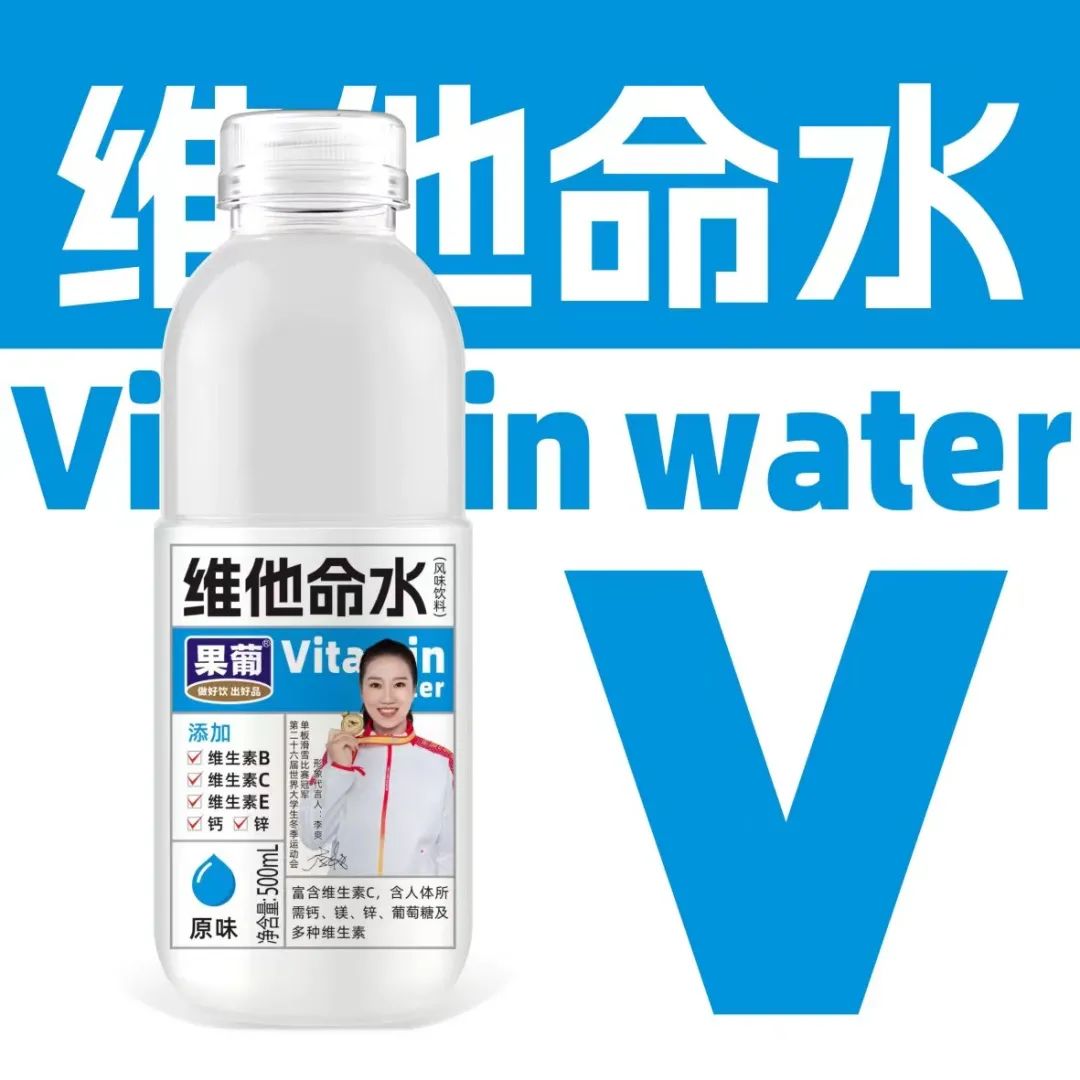 果葡®维他命水,冠军代言,富含多种维生素B、C、E,高含量电解质,钙、锌、镁,不一样的时代,不一样的饮品!门槛低!高利润!高支持!