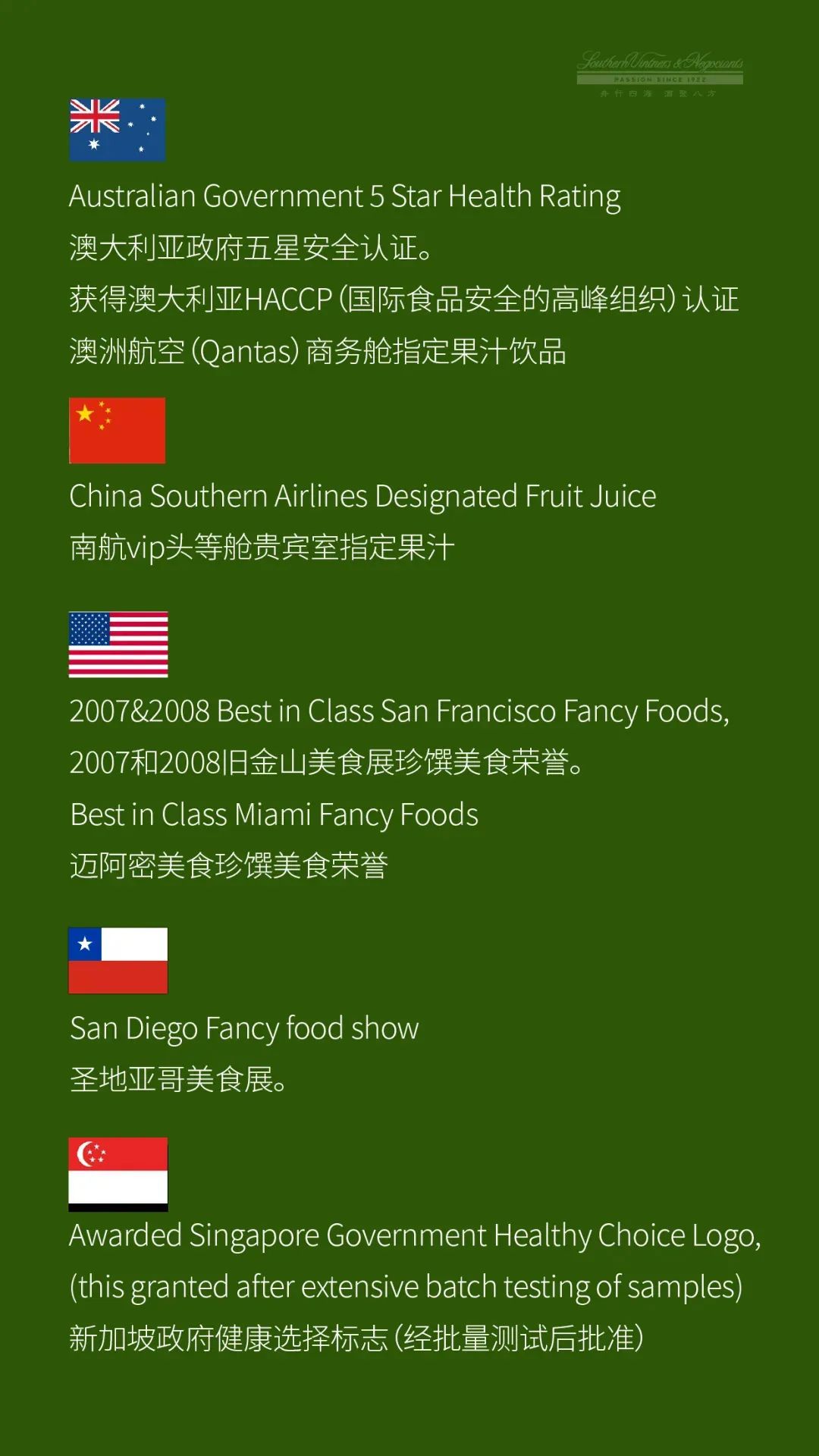 位于澳大利亚南部地区阿德莱德,是澳大利亚第一家酿造混合型多口味苹果汁的公司,澳大利亚第一大民航澳大利亚航空公司(Qantas)商务舱指定果汁。