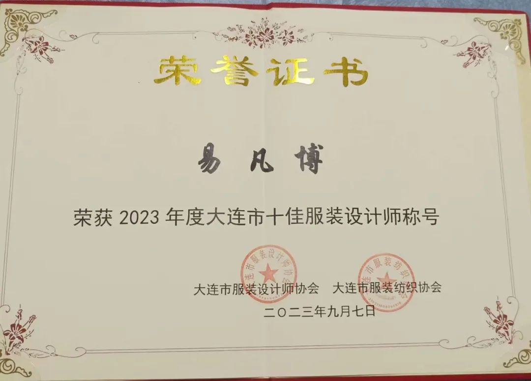 易凡博老师携我校服装设计与制作专业学生参与了本届大十佳服装设计师的评选,经过一周的角逐,我校参评作品向中外嘉宾展示了众多款式新颖、样式独特、极具个人特色的服装设计佳作。最终,易凡博老师斩获2023年度大连市十佳服装设计师称号。