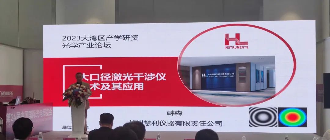 9月6日下午,慧利仪器董事长韩森教授在“2023光电产学研资应用论坛(光学专场)”中做“大口径激光干涉仪技术及其应用”报告。
