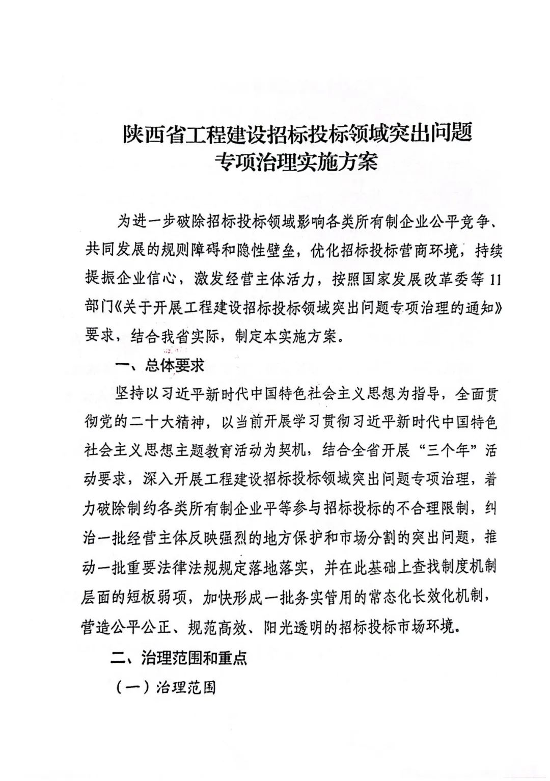 关于开展陕西省工程建设招标投标领域突出问题专项治理工作的通知