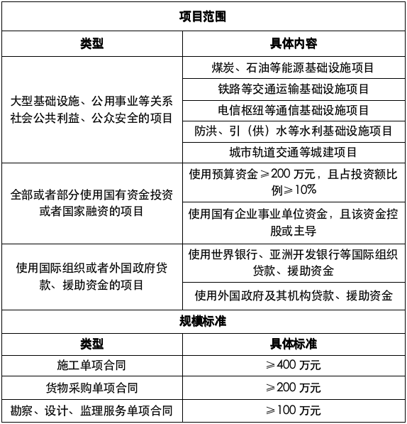 辨别哪些属于依法必须招标项目,一要看项目范围,二要看规模标准。
