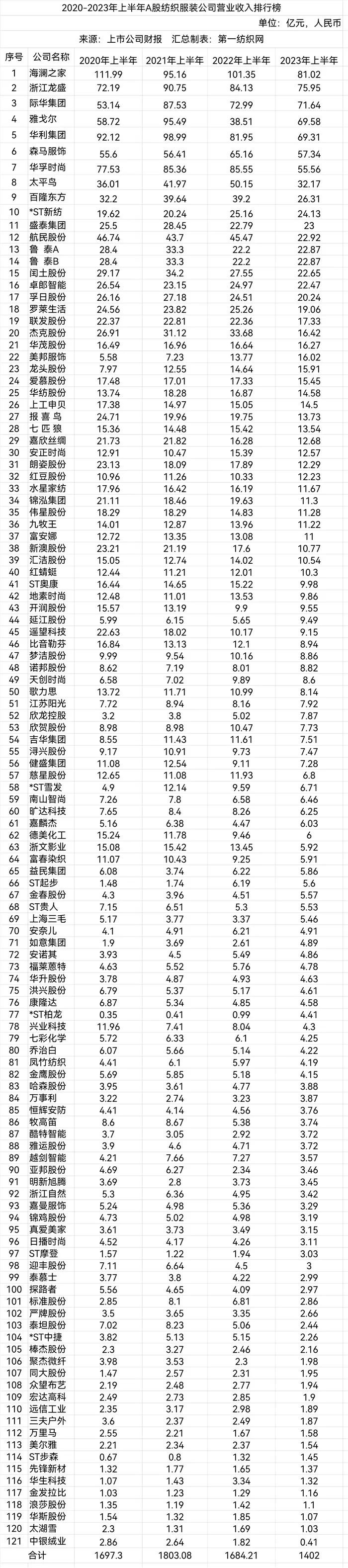 当前,A股纺织服装公司2023年半年报已经披露完毕,虽然经受了疫情结束后叠加大环境的影响,但121家纺织服装公司的业绩表现值得业界为之深度思考。
