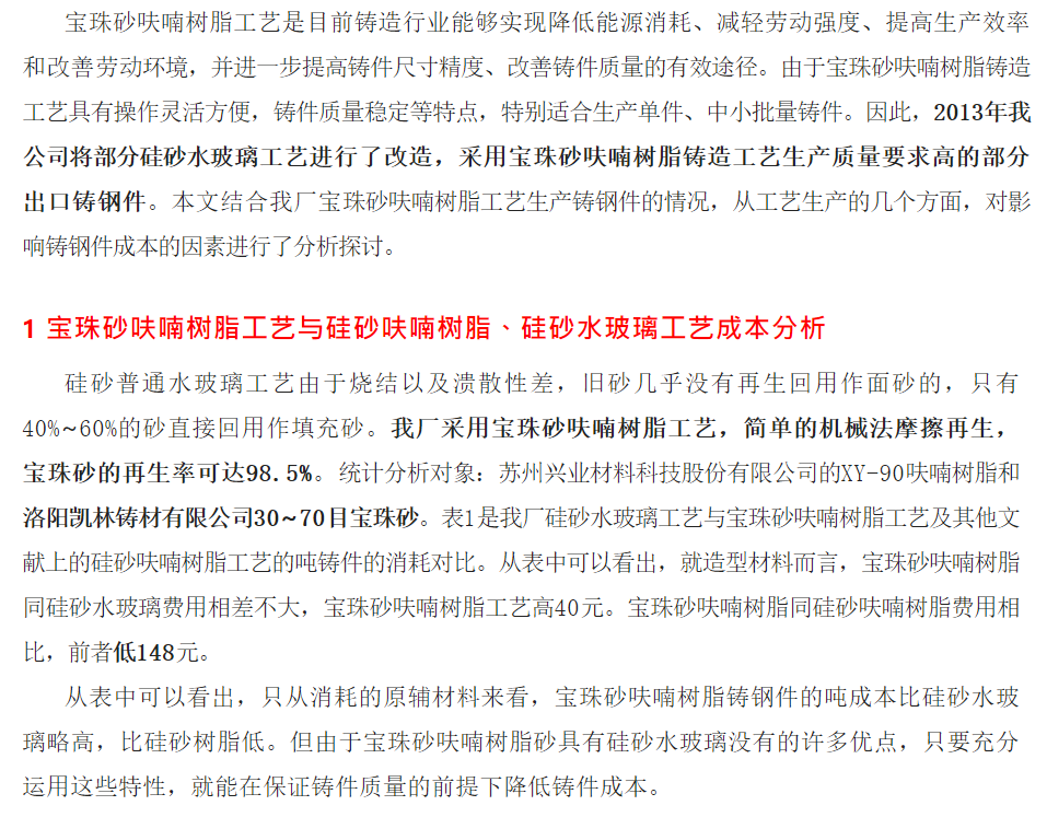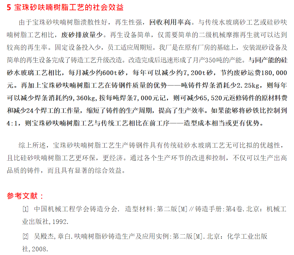 呋喃宝珠砂工艺在铸钢上的实践