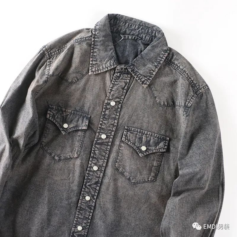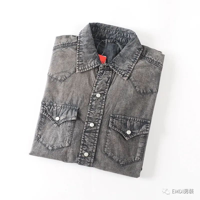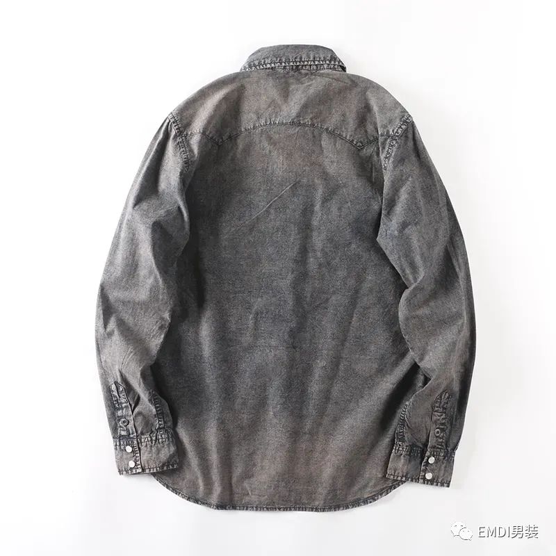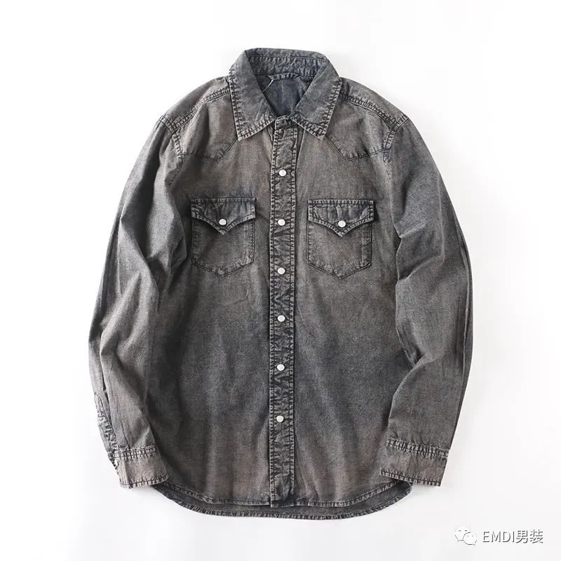 【淘宝】https://m.tb.cn/h.54H9Ab5?tk=QKnpdB2Sr4A CZ0001 「成衣水洗扎染工艺!外贸原单出口日单男士复古长袖牛仔衬衫衬衣潮」