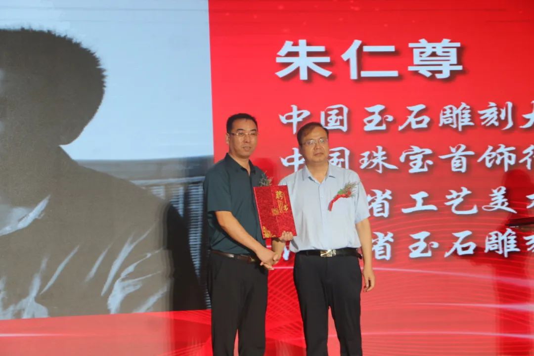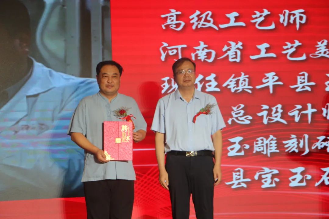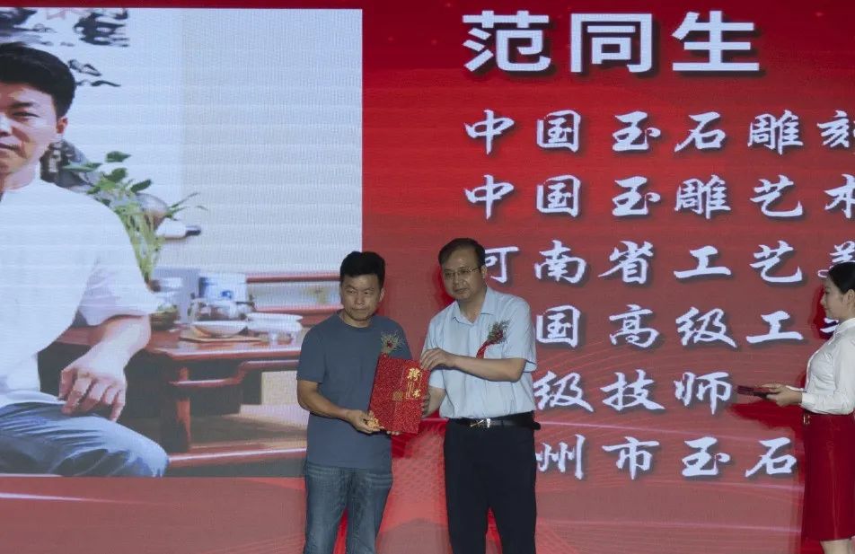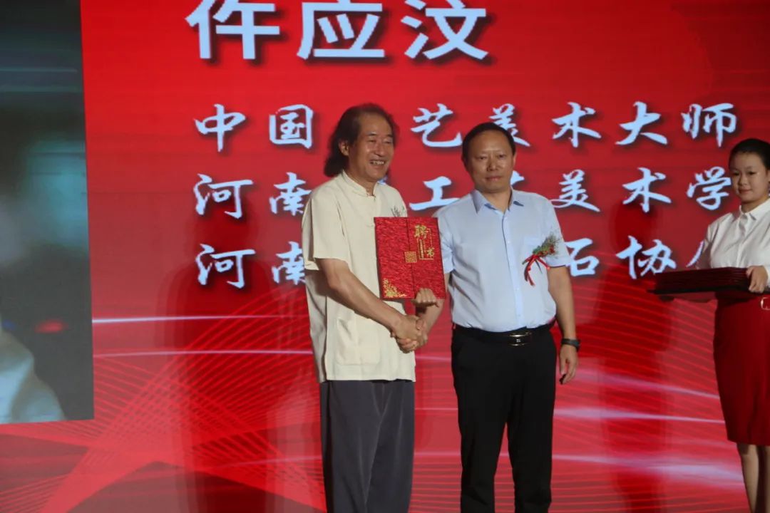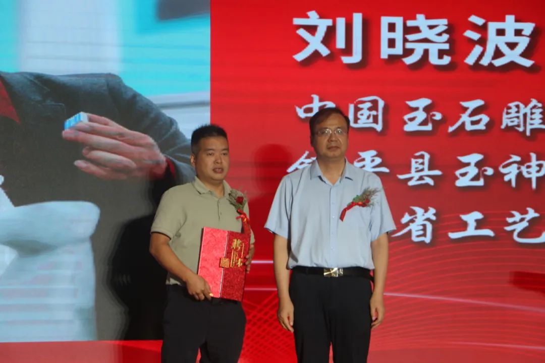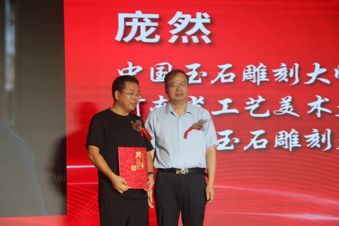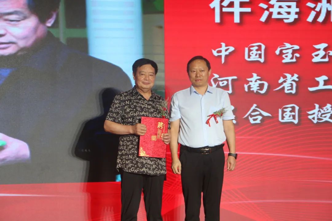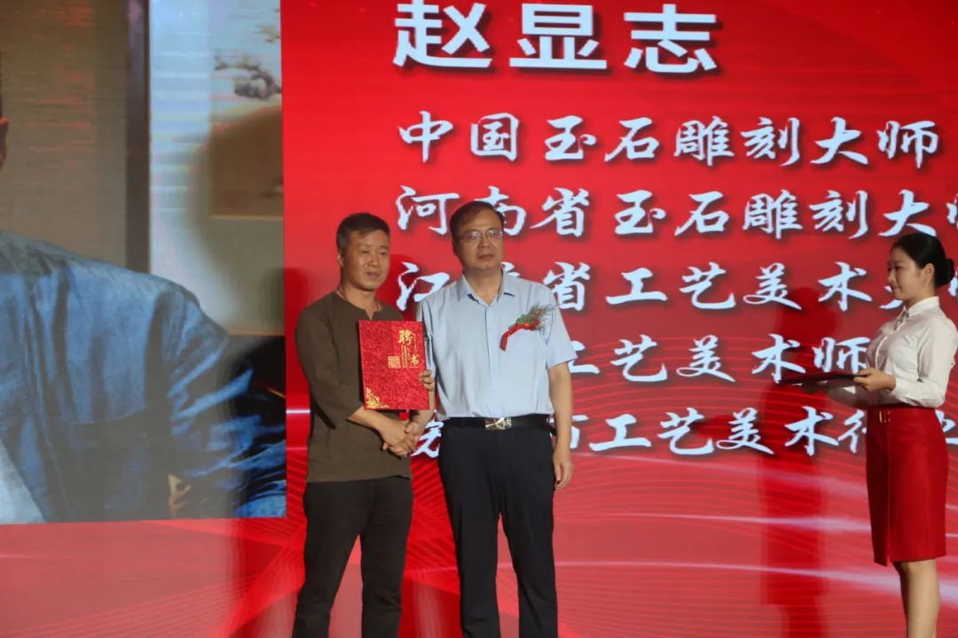 阿颖、王哲渠为河南省非物质文化遗产“南阳玉雕”技艺传习所揭牌。