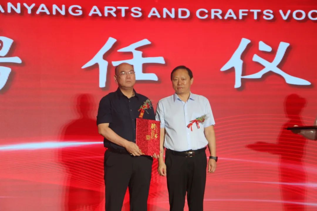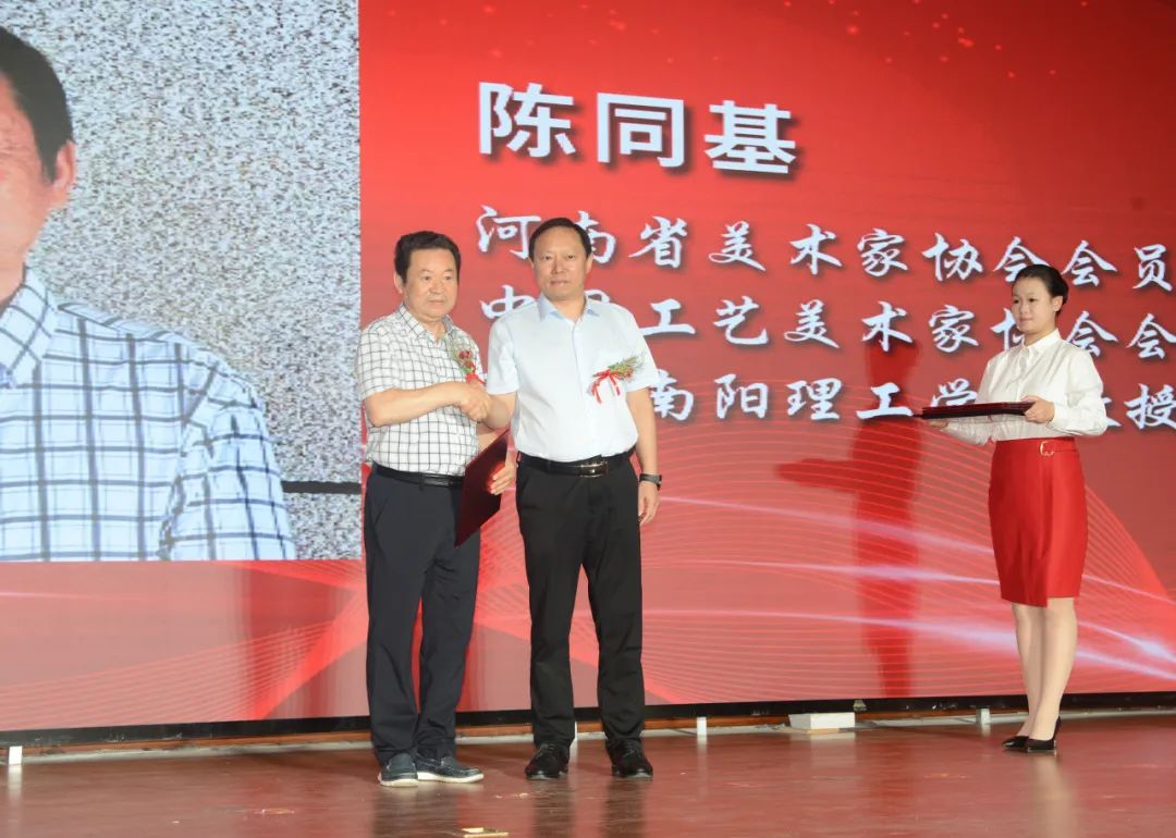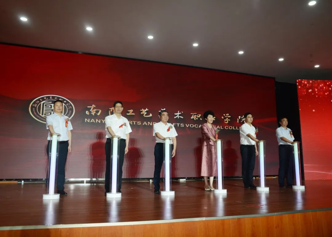 陈垠亭、阿颖、杨文普、宋振、张家成、艾进德等共同为南阳工艺美术职业学院揭牌。