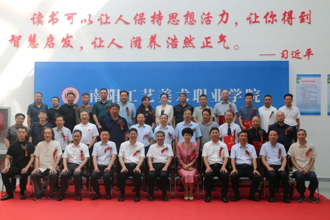 仪式最后,与会领导与南阳工艺美术职业学院外聘客座教授、“双师型”教师合影留念。