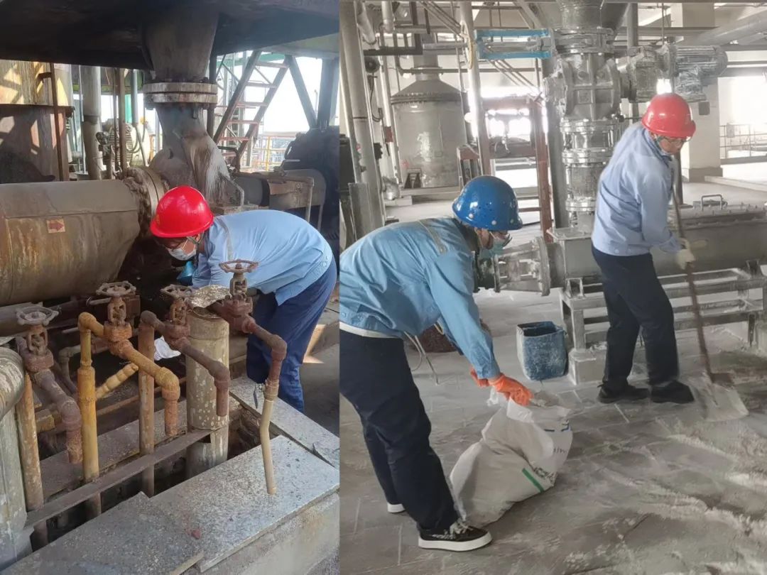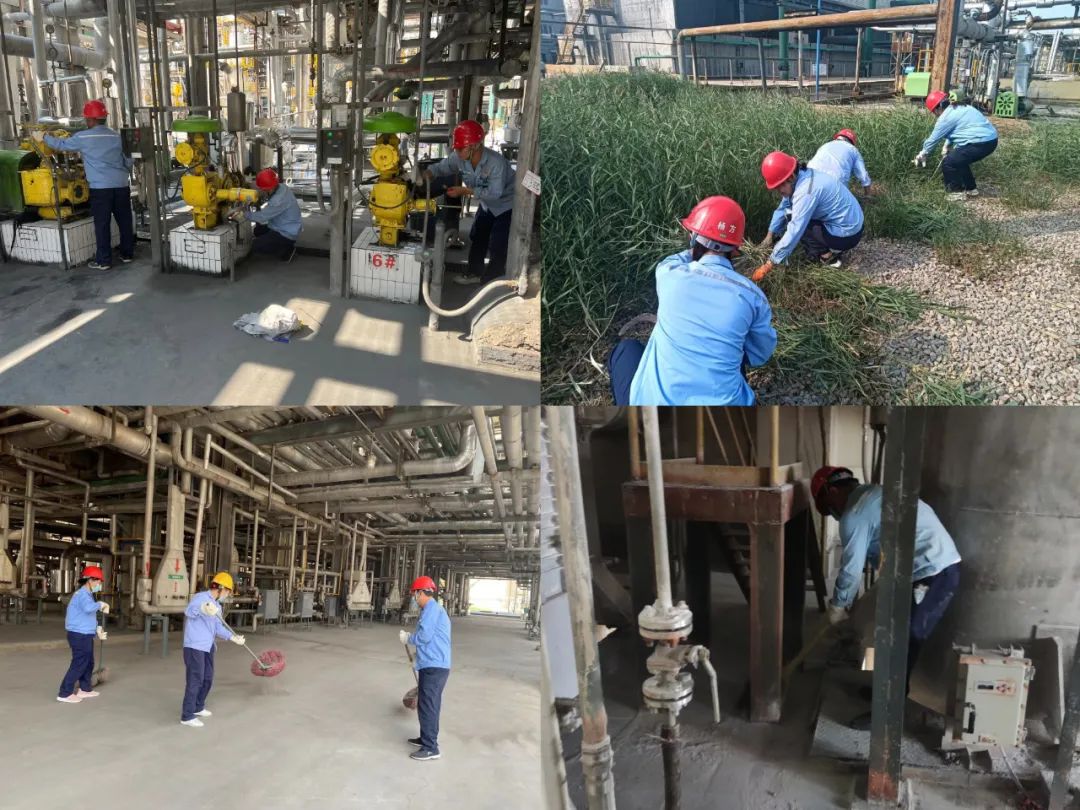 9月4日,丰喜化工公司紧抓停车检修机会,抽调科室及车间48人,由副总经理闫尚杰和总经理助理王东庆带队,奔赴太化新材料公司开展为期10天的“现场文明共建”活动。此次活动范围主要包括己二酸、环己酮、己内酰胺、硫酸和南区污水等装置区。行车途中,王东庆从“劳动纪律、安全纪律、政治纪律”等方面作动员讲话,他要求参加活动的每位职工要发扬“不怕苦 不怕累 敢打硬仗 能打胜仗”的精神,不辱使命,给公司交一份满意的答卷。9月5日上午10:30,在相关人员对接后,两个方阵立即前往生产现场。车间安全员对现场文明共建人员进行了安全培训,并对车危险因素进行了安全交底。在己二酸装置现场,面对高温作业环境,文明共建人员首先将散落在离心机基础上的己二酸物料一锹一锹地铲出来,装进编织袋,再用扫帚将离心机及周围的粉尘清扫干净。由于作业空间狭小,加之空气中漂浮的粉尘,汗水夹杂着物料,不经意间流入眼睛,让他们睁不开眼。他们顾不上清洗,只是简单地甩了甩头,继续拿着棉纱擦拭离心机机体。室内作业虽然没有烈日暴晒,但在40多度的离心机旁,他们接受着另一种“烤验”。大家齐心协力合作,仅用了一下午时间,4台离心机旧貌换新颜。在己内酰胺现场,文明共建人员有的手拿扫帚,清扫路面积尘;有的手拿抹布,擦拭机泵卫生;有的手拿油漆桶,对马路两边的路沿石进行亮化。这个团队时刻听从组织召唤、时刻以大局为重、时刻发扬无私奉献精神,以“现场文明共建”为目标,演绎着一个个精彩画面,诠释着任劳任怨的美好品质。