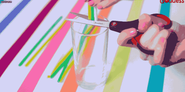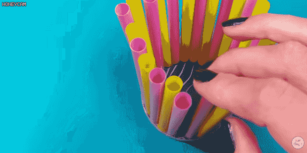 这样一个高颜值的吸管笔筒,我们其实很容易就可以自己做一个!收集相同颜色的吸管,然后把它们剪成合适的长度。