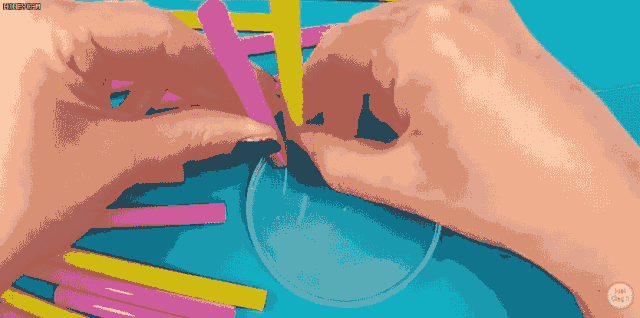 方法很简单,将吸管在蜡烛上烧灼,它就会自动变形。