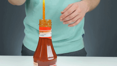 新开瓶的番茄酱、沙拉酱等,因为瓶中没有空气,酱料会黏在一起,倒不出来。取一根吸管插入瓶中,上下通通气就很容易倒出来了。
