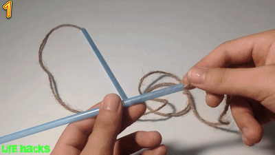 等待穿插完成后,将绳子系紧,然后藏进吸管内部。