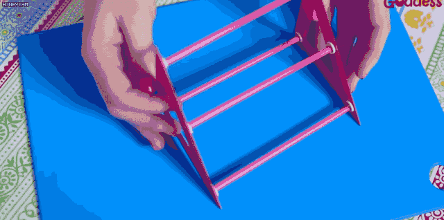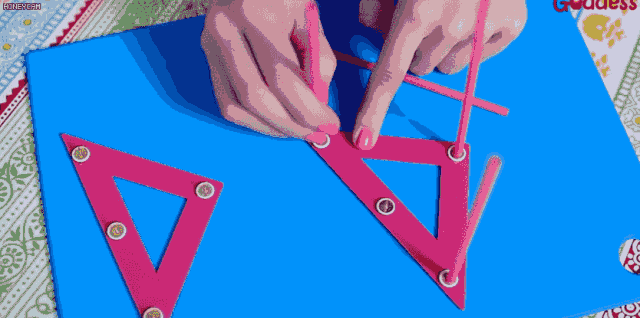 然后把另外一个三角尺盖在吸管上,一个漂亮的饰物夹子就做好了!可以挂你的耳钉耳环,也可以收藏化妆品和小物件,是不是特别漂亮,而且一分钱都不用花!