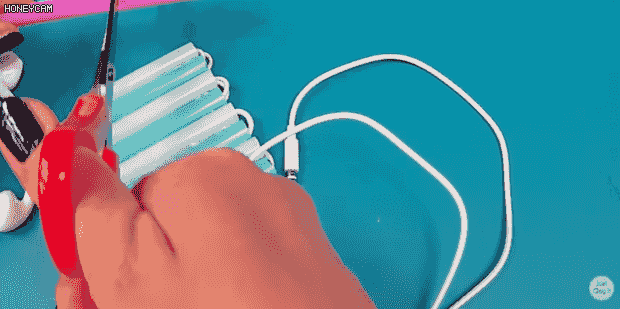剪开后,把吸管缠在数据线上,大功告成。一团乱麻的数据线立马变得井服服帖帖。