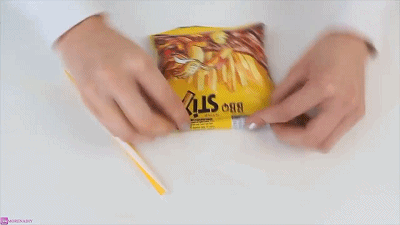或者直接将袋口卷上好几圈,再套上吸管,就不用担心零食吸水受潮了。