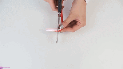 把白色和红色的吸管剪成小碎片,搭配到一起,然后用熨斗压平。