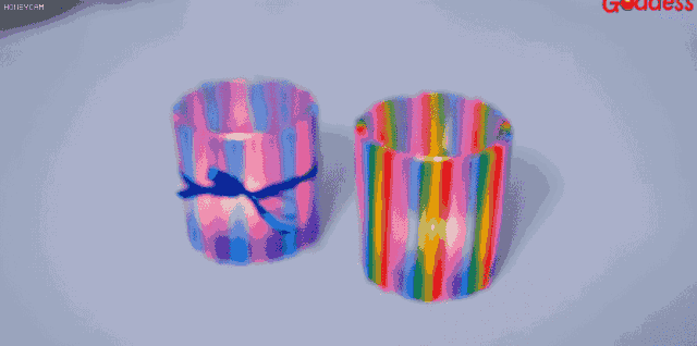 在一个不用的旧杯子上贴一圈双面胶,然后把买来的吸管粘在上面。沿着杯壁裁剪成合适的长度后,一个美丽的彩虹烛台就做好了!