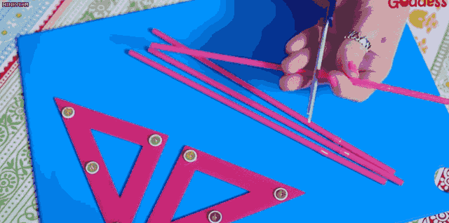 找到两个同样大小的三角尺,然后用花露水擦去上面的刻度,还可以染上自己喜欢的颜色,粉色就很棒!