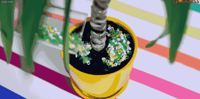 把不同颜色的吸管剪成小碎片,倒在花盆中,就是很好的装饰了~既透气,有掩盖了土壤的颜色,很好看!不比花店里买的差哦!