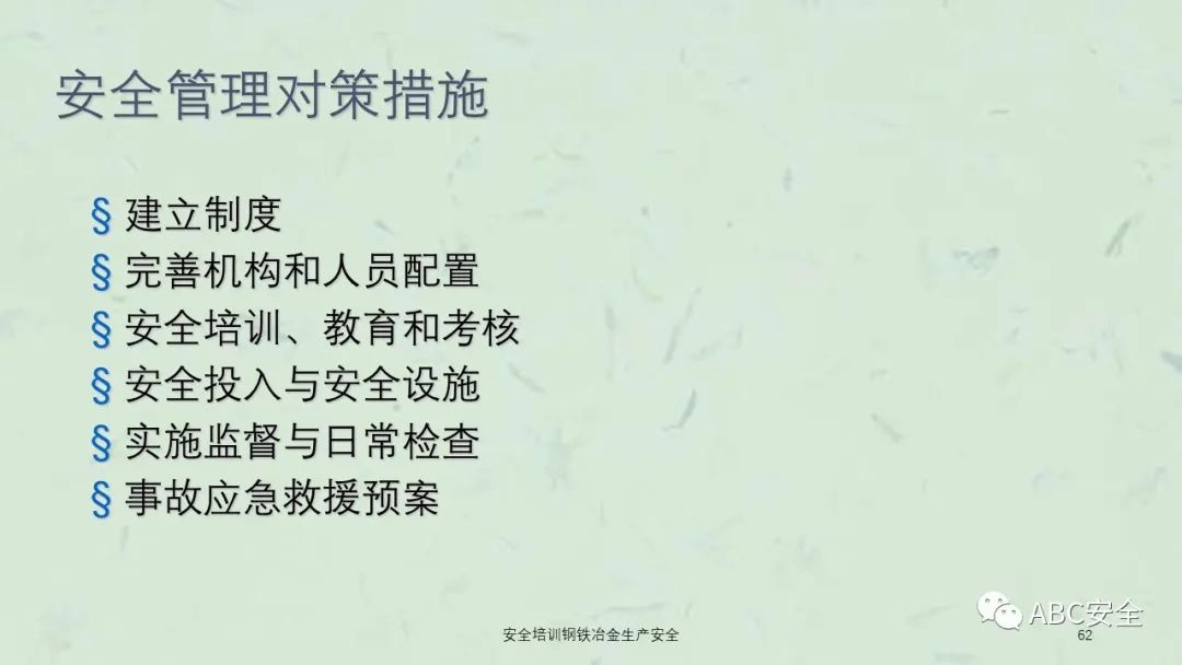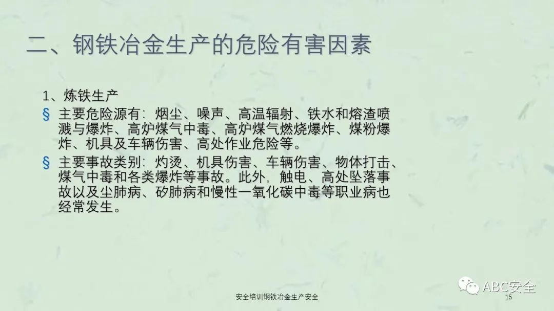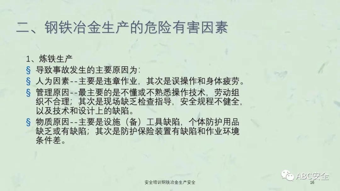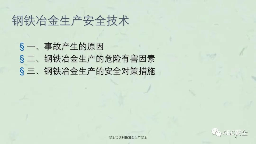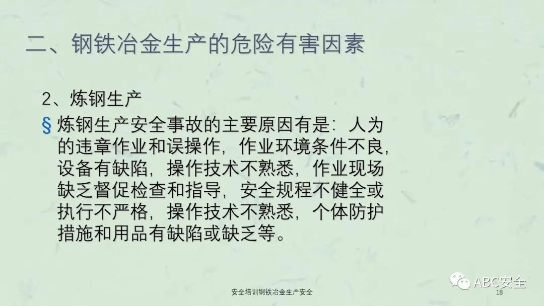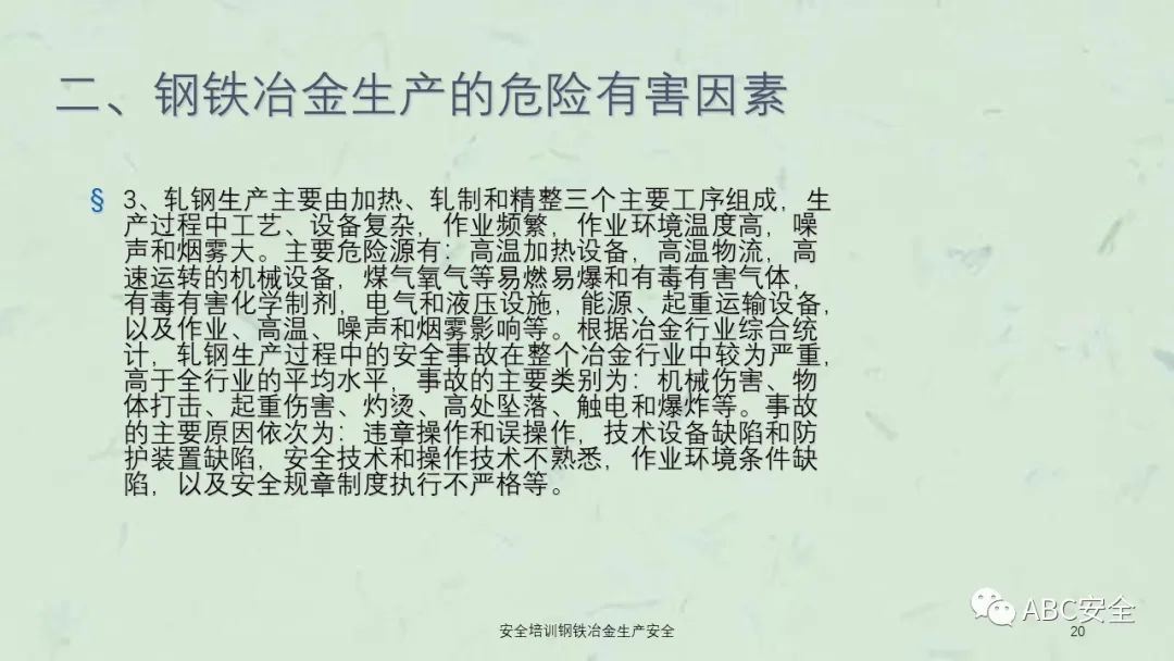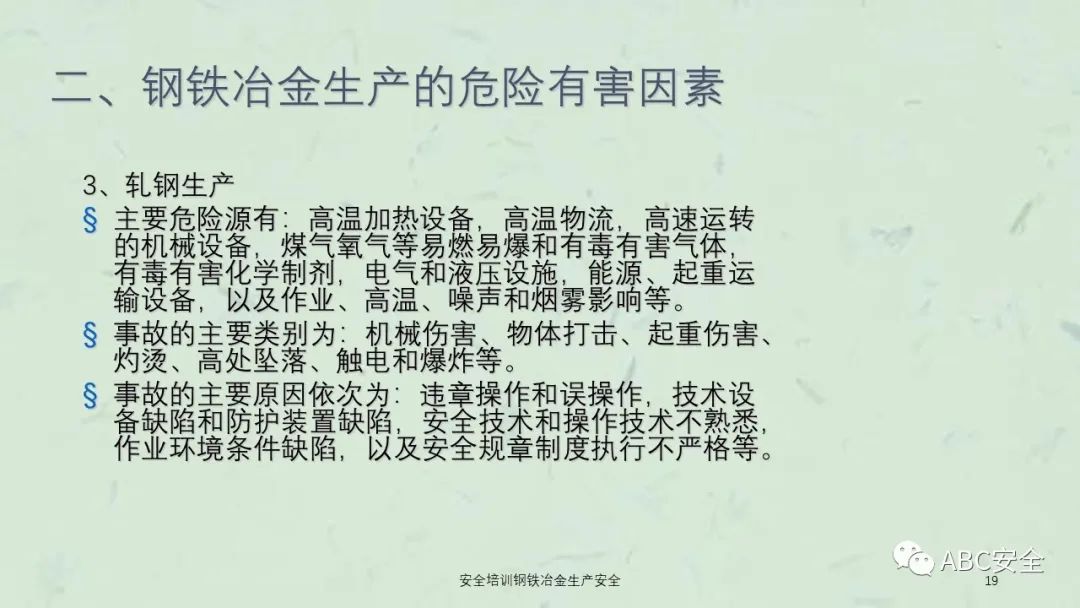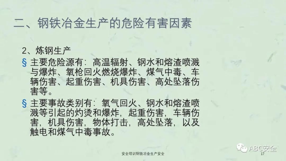 资料搜索关键码:ABC安全A20230222安全培训钢铁冶金生产安全课件