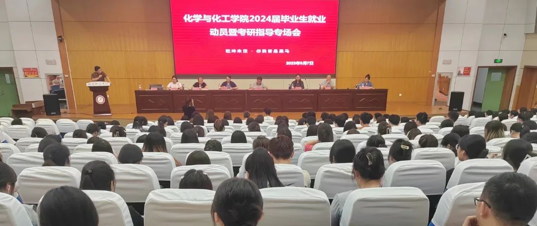 为进一步做好2024届毕业生考研与就业工作,帮助毕业生熟悉考研及就业政策,了解考研及就业形势,树立正确的择业观。9月7日上午,化学与化工学院在一号楼报告厅召开了2024届毕业生就业动员大会暨考研指导专场会。学院班子成员、各系主任、教师代表、全体辅导员,2024届毕业生参加了会议。