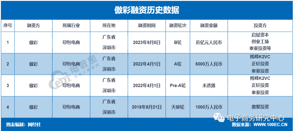 据悉,傲彩网成立于2017年,是一家通过智能化工具改变商品包装生产、交易过程的“互联网+”企业。本轮融资将用于研发技术攻关、人才引进、供应链布局。