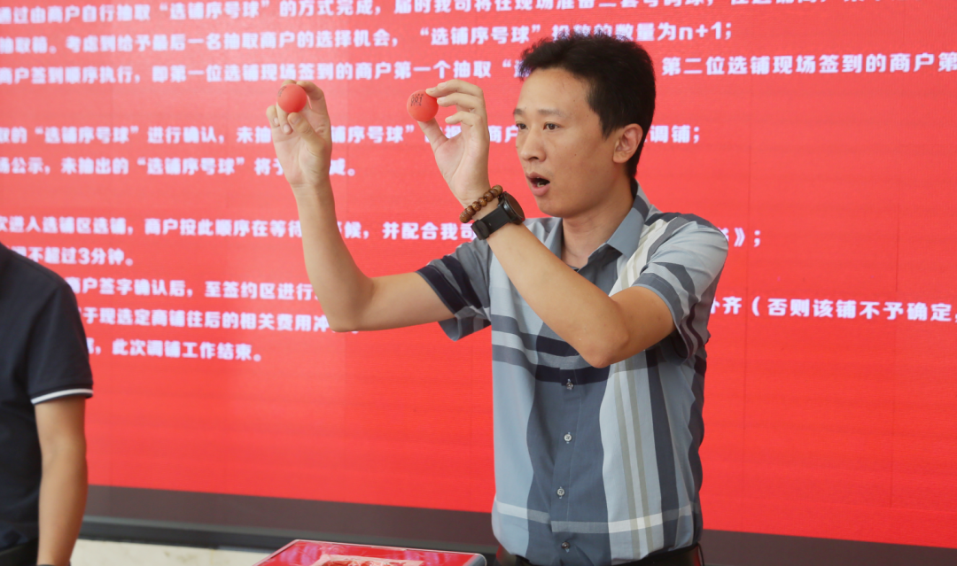“我们不单要做到一碗水端平,而且要让大家都看得见。”分铺组工作人员吴群说,本次调换铺活动秉承公平公正公开透明的原则,昨天就把可调换的空铺资源公示出来,让提交过调换铺申请的商户一起现场查看,确保今天活动上拿出的空铺资源与公示完全一致,“今天我们还准备了两套序号球,邀请商户现场确定用哪一套球抽签。放进去的是哪些球、每一位上台商户抽到了哪个序号,哪一个空铺资源被人选走,我们所有人亲眼见证、亲身监督。”