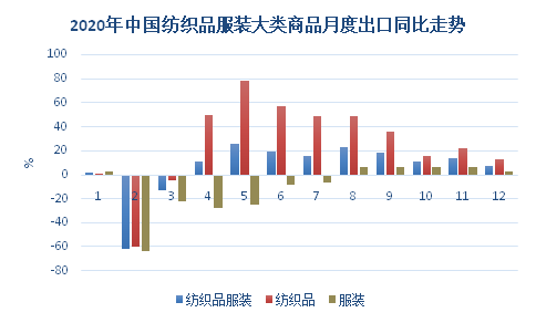 2020年,在“稳外贸”政策的大力支持下,通过全体外贸企业的共同努力,中国纺织品服装顶住了疫情带来的巨大冲击,全年出口实现较快增长,成为拉动全国货物贸易增长的重要动力。
