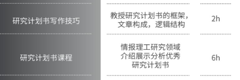 上课形式:通过基础课程让学生对研究计划书以及研究领域有了解,引导学生制作研究计划书的初稿,后通过1对1个别指导,辅导学生完成研究计划书。
