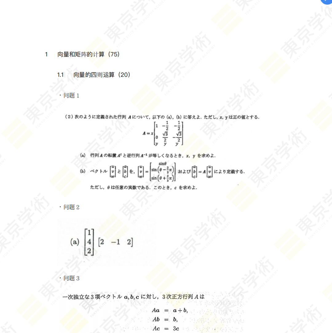 除了东学已开设中的大学院数学课之外,我们还另外为数学底子较弱的学员专门开设了基础数学课。授课讲师为早稻田大学基干理工数学专攻博士,多年数学教学经验,擅长由浅入深、结合例题、针对大学院数学所需要的基础知识为考生进行讲解。课程附带专门习题册(根据知识点进行系统排列,每个知识点10道左右习题),可供学员进行课后加强练习。