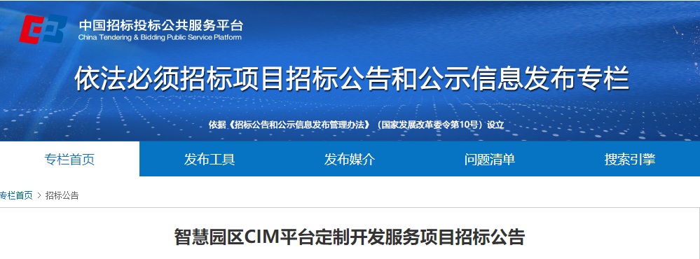 1.招标范围:智慧园区CIM平台定制开发服务。