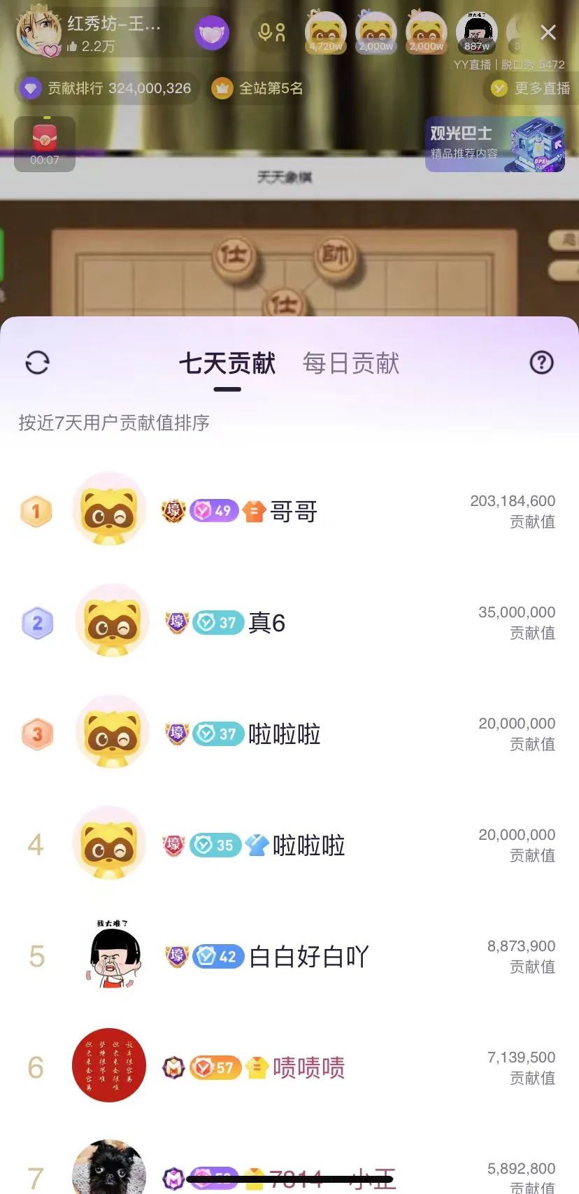 今天王小源发现自己的榜单已经破了30w,直言自己成了YY电工!仅神豪哥哥自己就上榜了20W+。