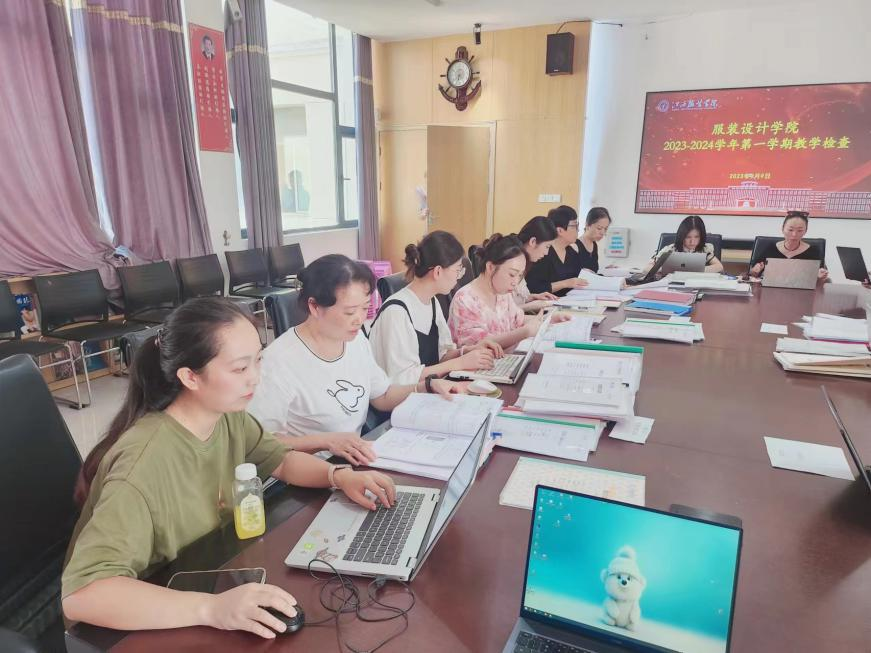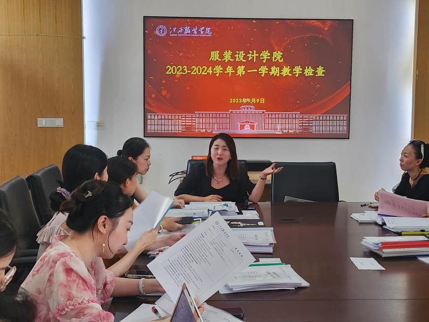 2023年9月8日,服装设计学院举行了2023-2024学年度第一学期开学初教学检查工作,以确保教育教学质量,提高教育水平,推动学院各项工作有序展开。本次教学检查由学院成立的专门工作小组进行,教学检查活动由罗密副院长主持,成员包括学院教学委员会成员和学院督导及骨干教师。