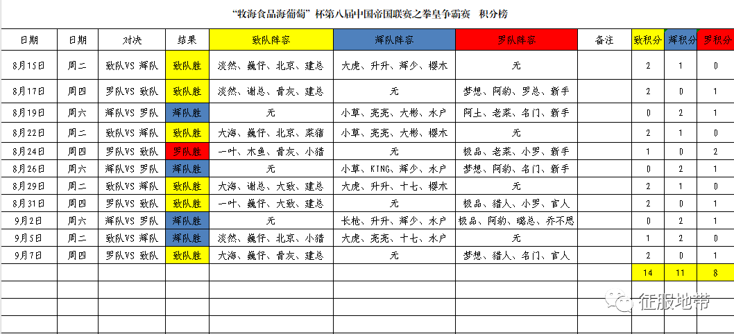 格斗之魂队接近躺平 “牧海食品海葡萄”杯第八届中国帝国联赛之拳皇争霸赛 积分榜