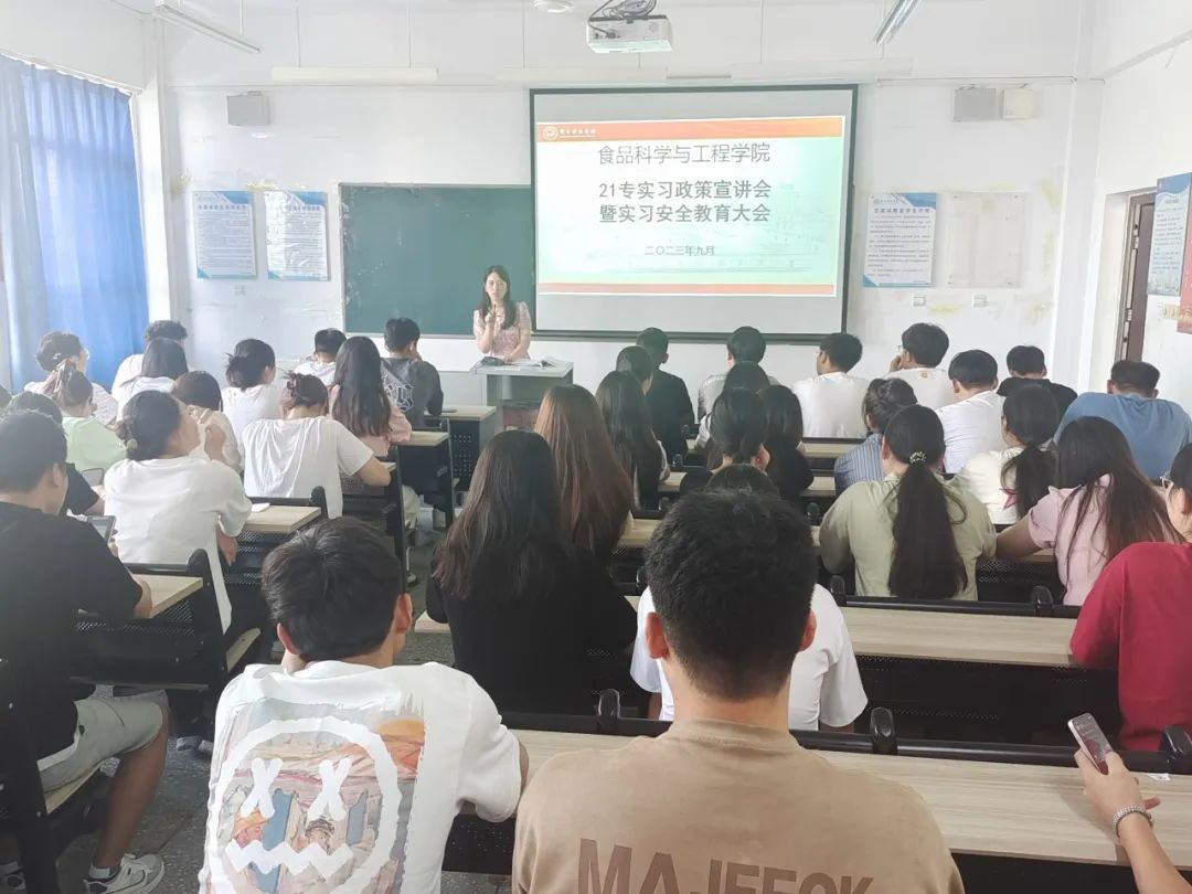 9月8日,食品科学与工程学院在科西527召开21级专科班实习政策宣讲会暨实习安全教育大会。本次会议由辅导员仝斐斐主持,21级专科毕业生到场参加。