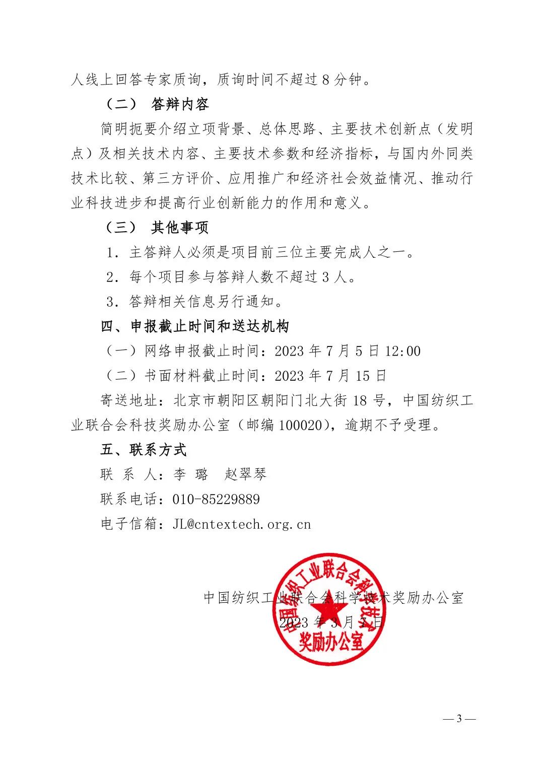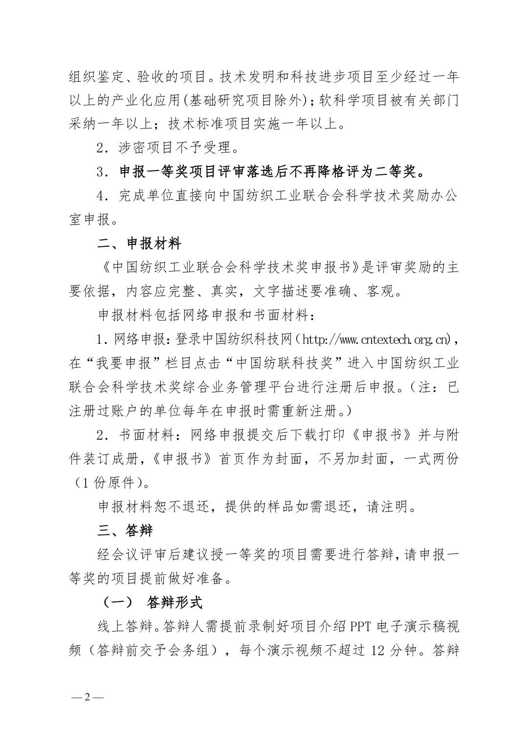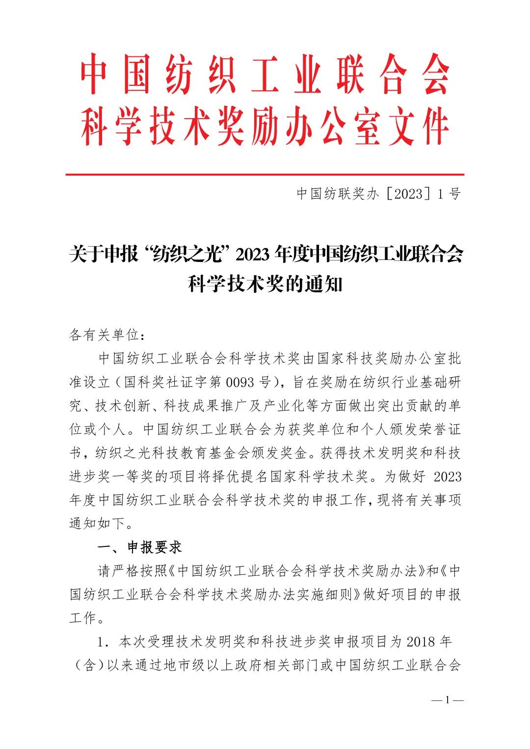 关于申报“纺织之光“2023年度中国纺织工业联合会科学技术奖的通知