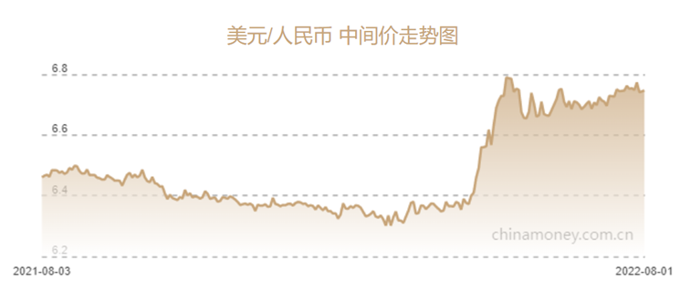 自今年四月开始,人民币汇率开始贬值,5月至今,汇率基本保持在6.6-6.8之间。本轮贬值幅度较大,有利于提升出口企业利润率,但如果波动过大也会增大汇兑风险。