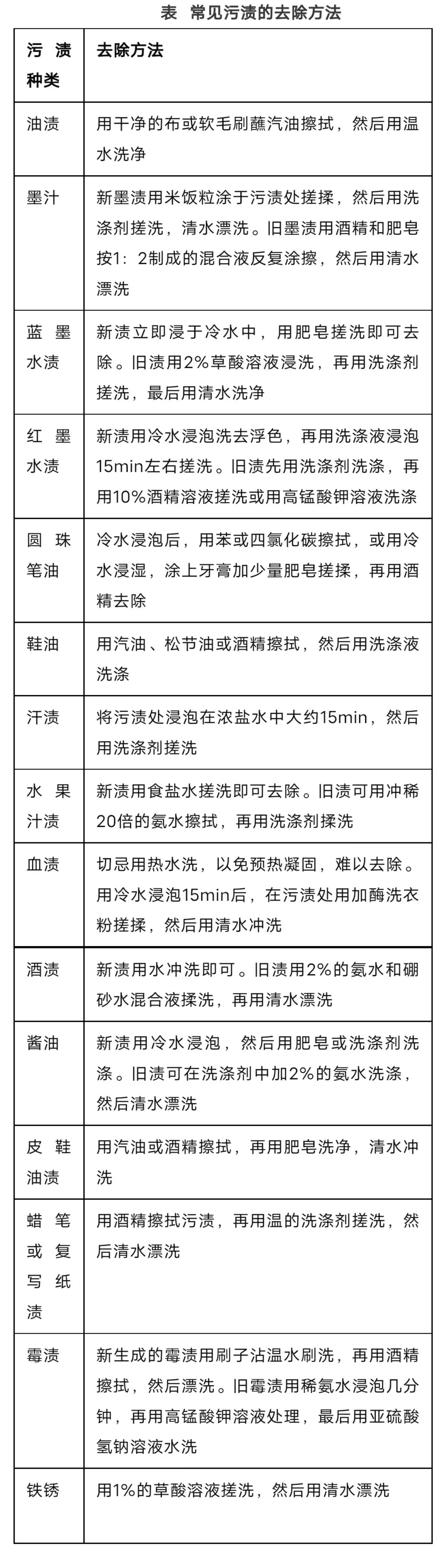常见污渍的去除方法