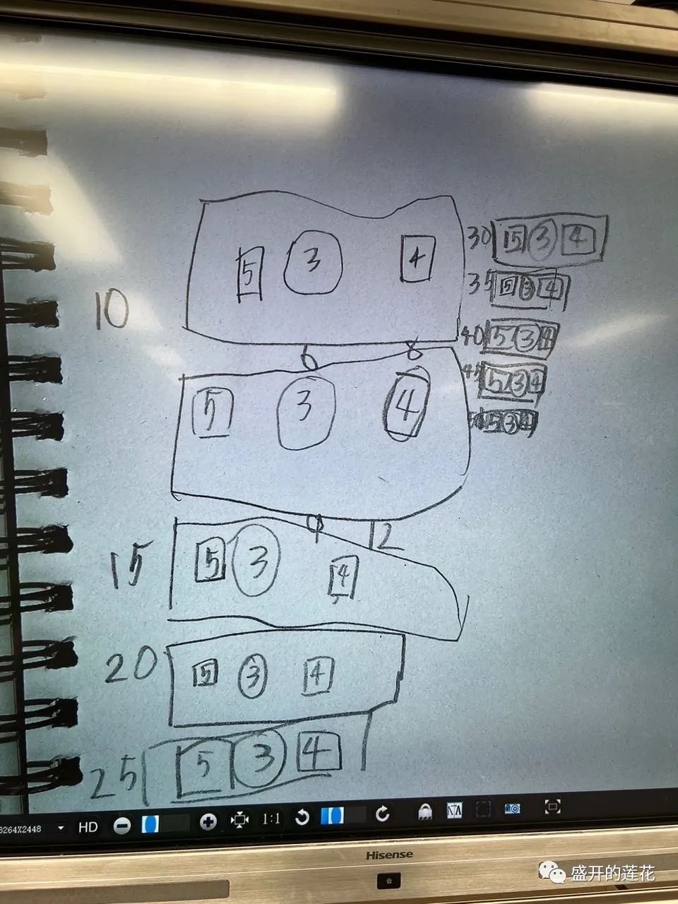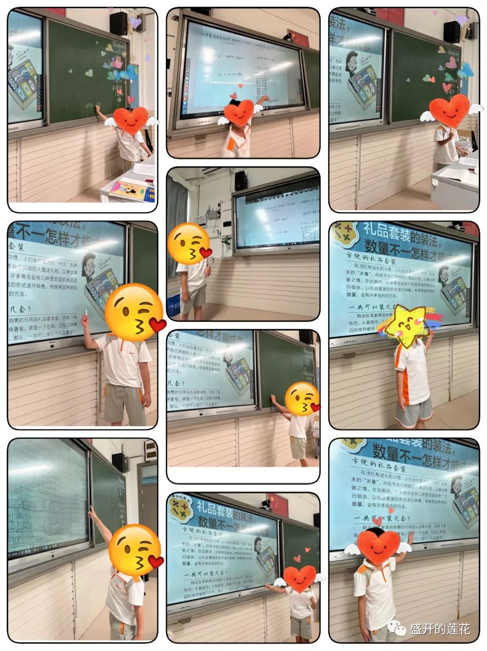 不过这次,出现了一些问题:首先第一位同学写的字非常小,经过改进,第二位同学字就变大了。第二位同学使用了“未来要学习的知识——除法”,而且,显然,使用的不正确,同学们也听不懂,他自己说到一半也说不下去了。我表扬了孩子的大方发言。也提出“我们要使用目前学习过的知识,尽量不用“未来的知识””。第三位,第四位,第五位……我在孩子的回答上看到了每位孩子积极思考的态度和乐于分享的热情,还看到了一位位隐身其后的父母长辈的殷殷辅导。这一切都令我这个做老师的非常高兴与感动。