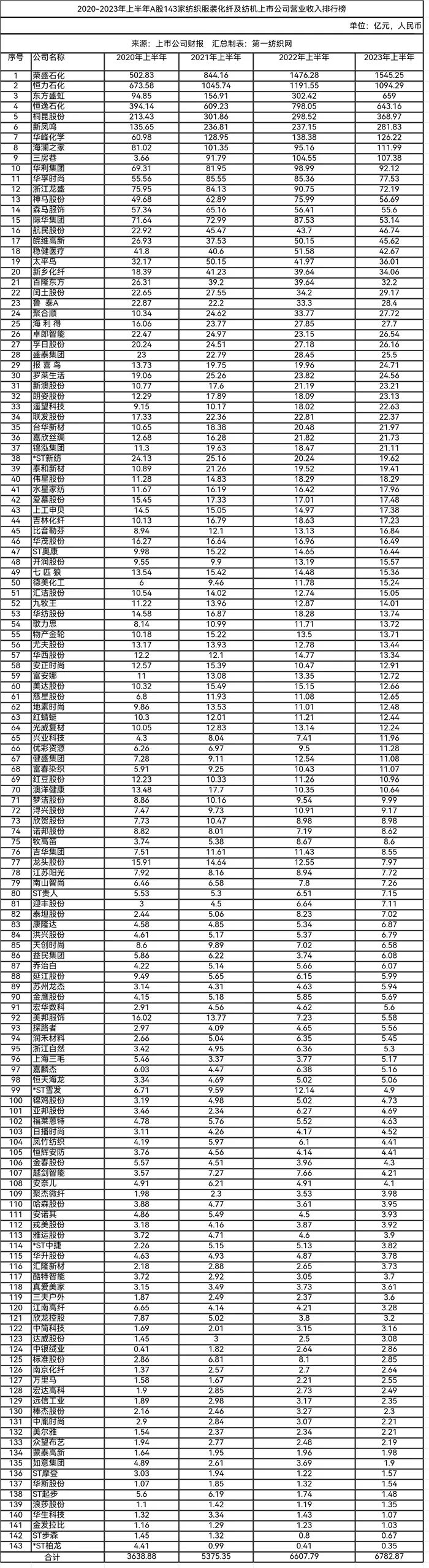 当前,A股纺织服装公司2023年半年报已经披露完毕,虽然经受了疫情结束后叠加大环境的影响,但众多纺织服装、化学纤维、化学品及纺机上市公司的业绩表现引发了业界的广泛关注。
