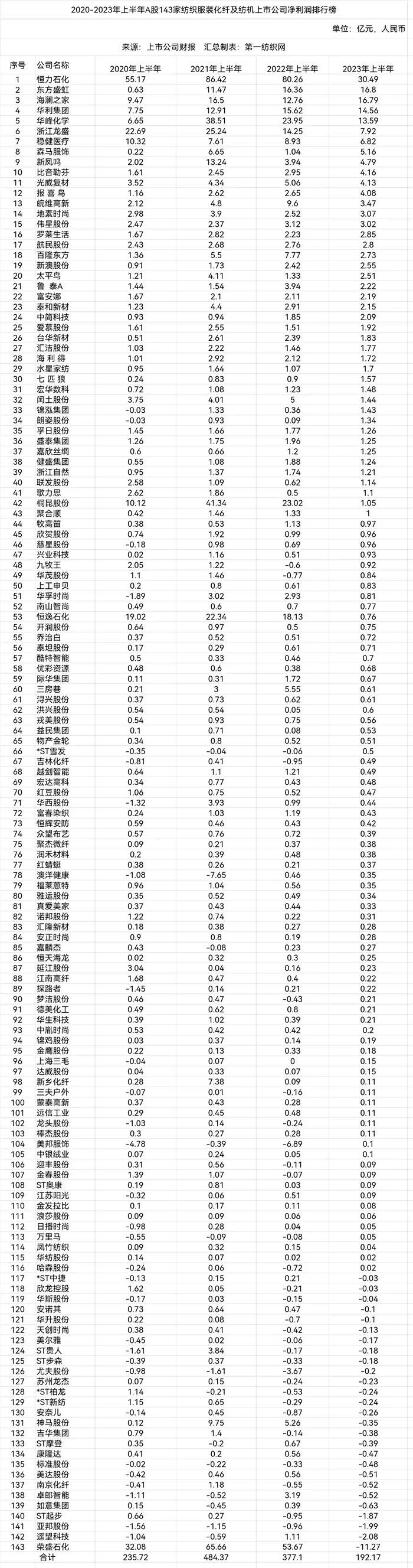 后半场要怎么干?——170家纺织服装化纤上市公司上半年营收与净利榜中有答案第一纺织网 第一纺织网
