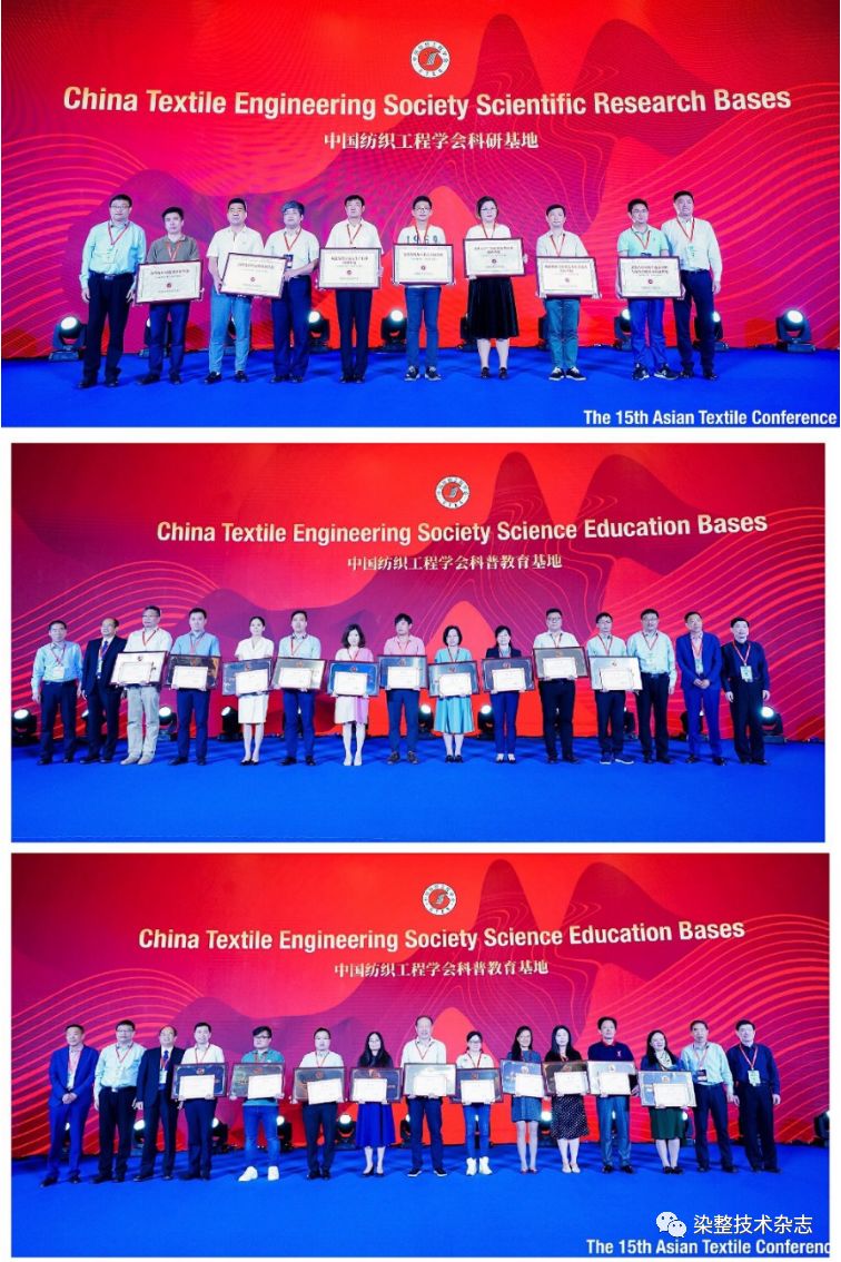 大会宣布2019中国纺织工程学会学术奖获奖名单。2019纺织学术大奖授予江南大学教授高卫东;姚菊明等5人荣获2019纺织学术带头人奖;蔡伟龙等3人荣获2019纺织技术带头人奖;陈烨等3人荣获“绍兴飞亚”2019纺织青年科技奖;陈超等5人荣获“百草纤维”2019纺织科技成果转化贡献奖获。大会还为中国纺织工程学会“纺织酶应用技术科研基地”等7家科研基地,为西安工程大学等20家中国纺织工程学会科普教育基地隆重授牌。