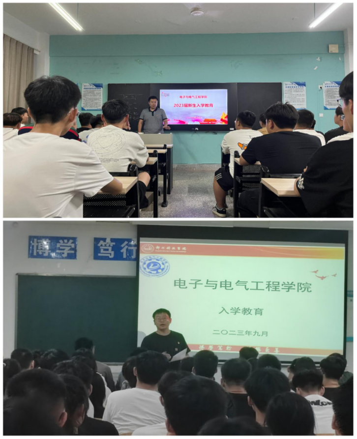 长夏已尽,新秋将始。2023年9月8日晚,电子与电气工程学院新生辅导员王骞、牛金榜老师组织23级新生召开“新生入学教育”主题班会,旨在引领新生更快融入校园生活、确立人生航向,实现自己的人生价值,做昂扬奋发的电院学子。
