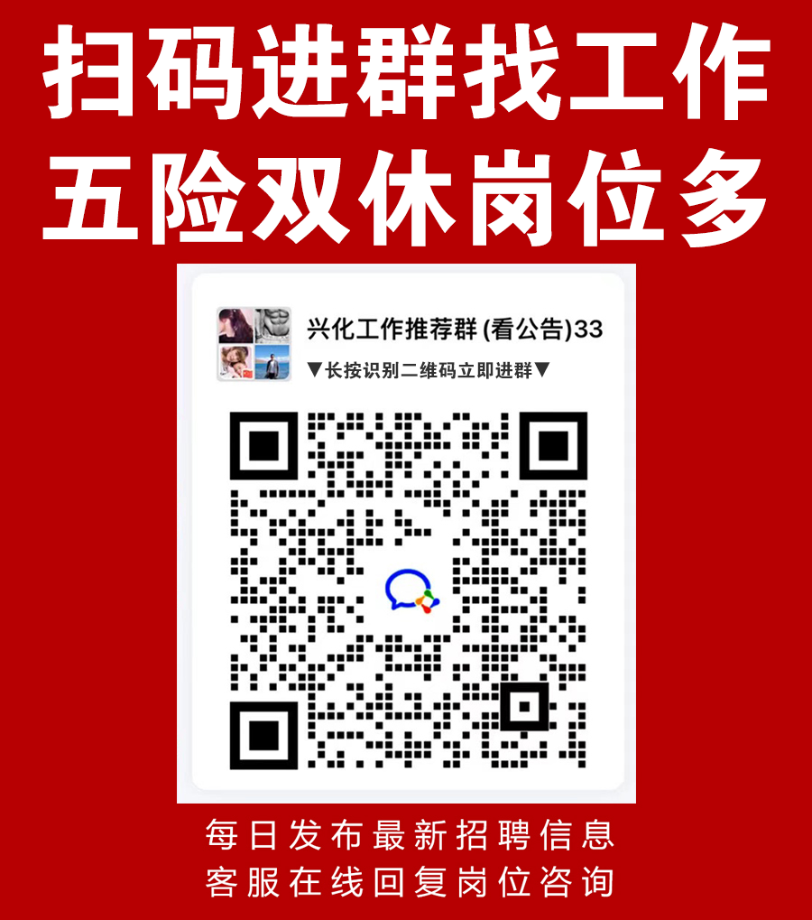 关注"全兴化直聘"公众号,后台回复岗位关键词【文员、销售、会计】等,会智能给大家推荐岗位哦!